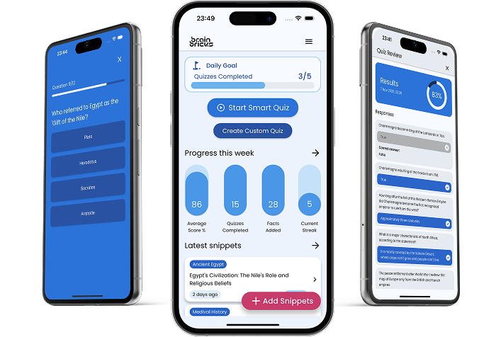 We track your performance to adjust difficulty and focus more practice where you need it. Brain Bricks reminds you when to review specific topics, using spaced repetition to maximise retention.